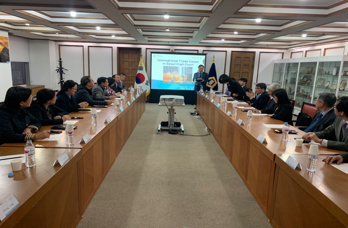 11月8日下午,中国国际私法学会代表团应邀参观韩国首尔高等法院,与韩国首尔高等法院院长和法官举行座谈,并参观电子审判庭。在11月9日举办的研讨会中,黄进会长回顾了过去9年中韩国际私法学术交流情况。黄进指出,此次会议的召开有三大背景:一是当前国际社会正处于大发展、大变革及大调整时期,挑战与机遇并存;二是国际民商事领域法律的发展迅速,令人鼓舞;三是当前中韩两国政治关系较为平和稳定,经贸关系稳步增长,为两国国际私法学者的交流合作提供良好的契机,希望两国学者在以往交流基础上更上一层楼。黄进会长特别提出要加强比较研究、针对问题的研究、推进本国相关法律制度现代化、促进国际合作,中韩两国国际私法专家学者要在世界国际私法领域、国际舞台上发声,推动双边与多边合作。张玲副教授做了《外国民商事判决在中国的承认与执行——以青岛中院承认与执行韩国判决案为视角》的报告。