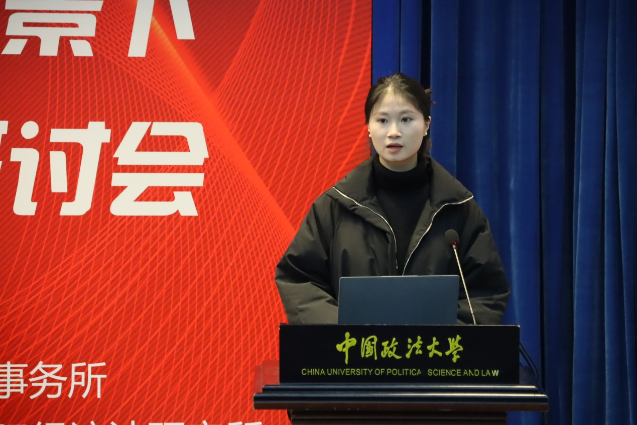 博士研究生任旭敏以“国际投资法视阈下公共利益条款的困境与出路”为题,讨论了国际投资法中公共利益条款的立法演进、公共利益条款所面临的挑战,以及公共利益条款的应然构造。