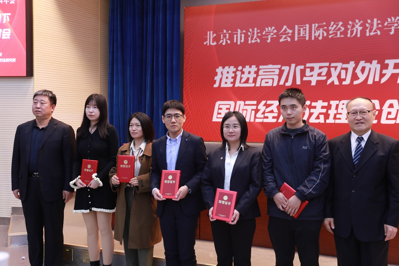 国际经济法研究所所长、教授、博士研究生导师、北京市法学会国际经济法学研究会副会长范晓波,清华大学法学院副院长、长聘副教授、北京市法学会国际经济法学研究会副会长高丝敏担任颁奖嘉宾。