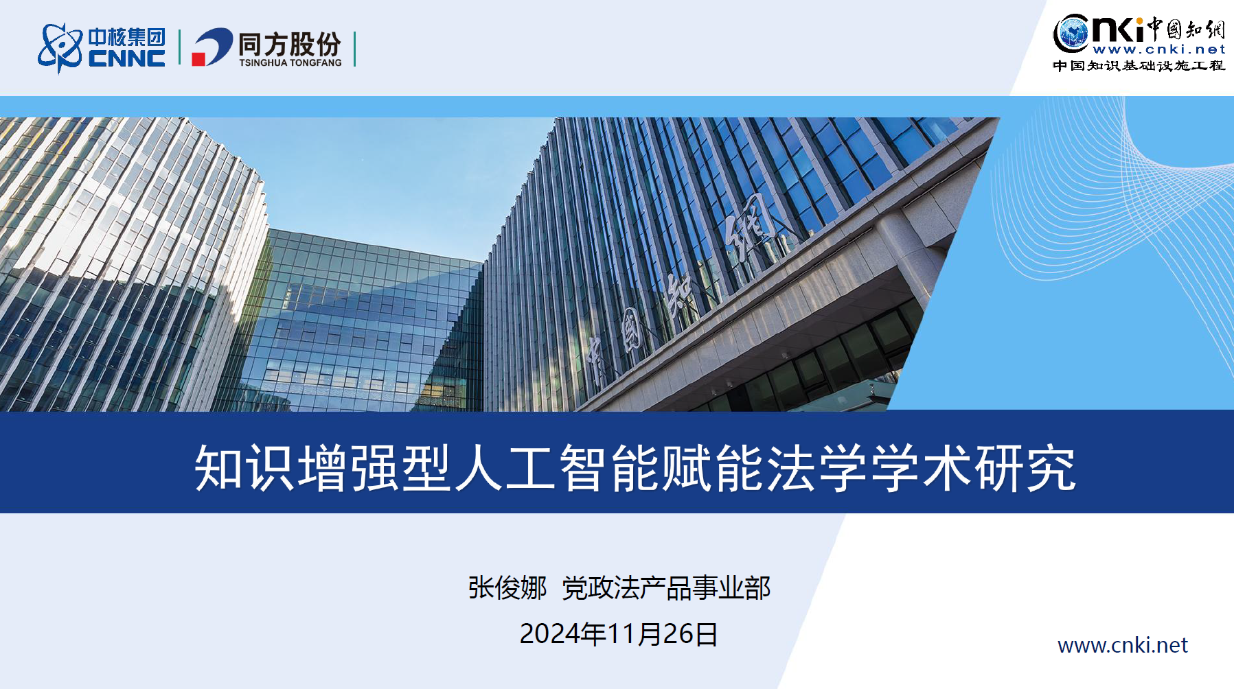 2024年11月26日,同方知网党政法产品事业部法律产品线负责人张俊娜应邀以“知识增强型人工智能赋能法学研究”为题,面向黑料网