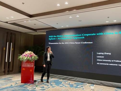 张鹿苹博士以“Will the Biden Administration Cooperate with China in the Space Sphere- An Empirical Approach”为题,重点介绍了运用实证分析方法对艾森豪威尔政府以来的美国空间政策文件的研究成果,指出中美之间新的太空竞赛不可能重复旧的美苏竞赛,为了太空探索利益,中美之间不应当遵循彼此对抗的冷战模式。虽然美国的阿尔忒弥斯项目一定程度上可能对抗了中俄国际月球科研站协议,但这并不一定意味着中美两国无法进行任何合作。在新的中美时代,拜登政府如何以“国际合作”为主题,在太空领域与中国进行合作尚有待观察。