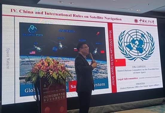 孔得建博士在会上作了题为“The Dilemma inConstructing International Rules on Satellite Navigation and China’s Contribution”的专题报告,指出卫星导航的国际法治建设仍处于非常初级的阶段,尚未形成任何具有约束力的专门性国际法律文件。在此背景下,需要构建以国家主权原则、所有权和成本回收、民事责任等制度为基本要素的国际规则体系。中国作为负责任的卫星导航强国,应积极贡献中国智慧,提供中国方案,可以在联合国外空委的框架下协调有关主体通力合作并予以多点突破,统筹推进卫星导航的国内法治与国际法治建设,得到了参会者的肯定与赞扬。