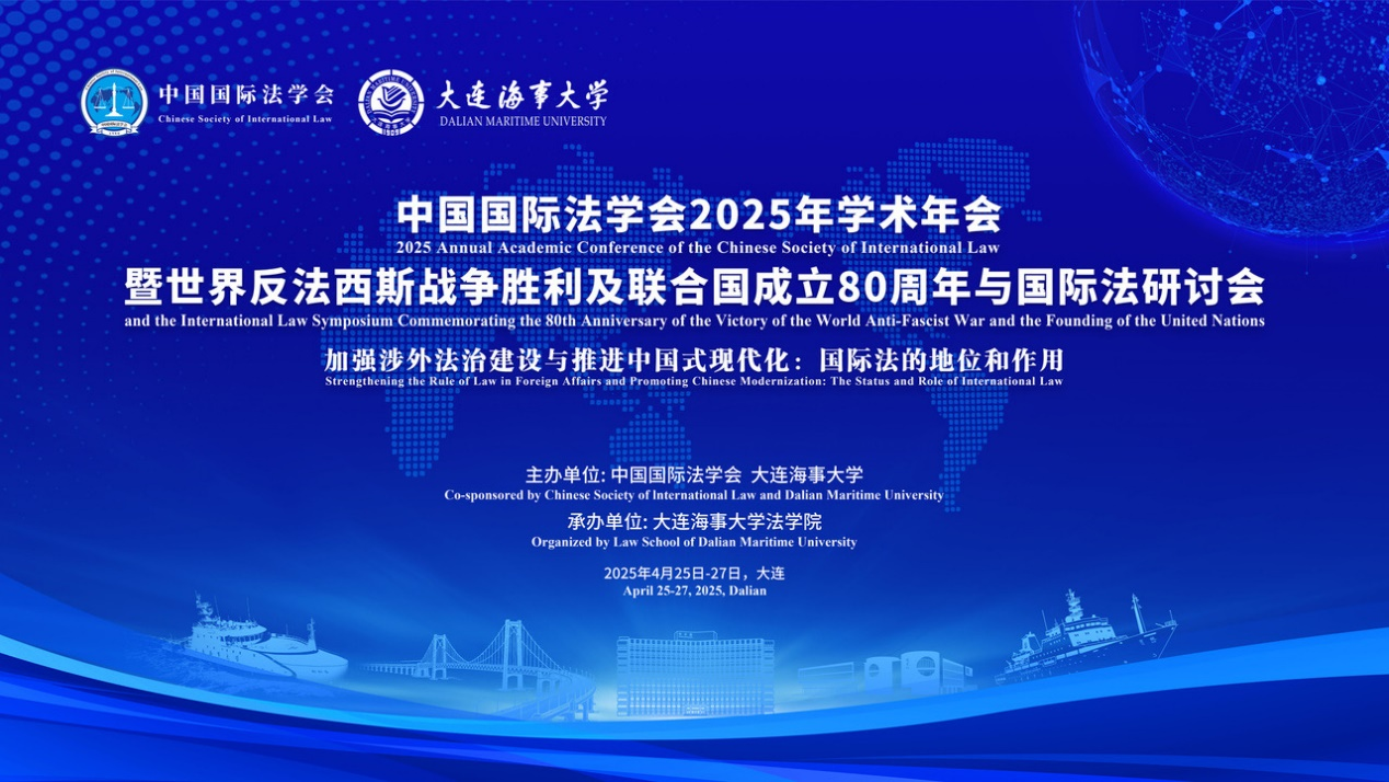 4月25日至27日,中国国际法学会2025年学术年会暨世界反法西斯战争胜利及联合国成立80周年与国际法研讨会在大连举行。本届年会主题为“加强涉外法治建设与推进中国式现代化:国际法的地位和作用”,由中国国际法学会和大连海事大学联合主办、大连海事大学法学院承办。