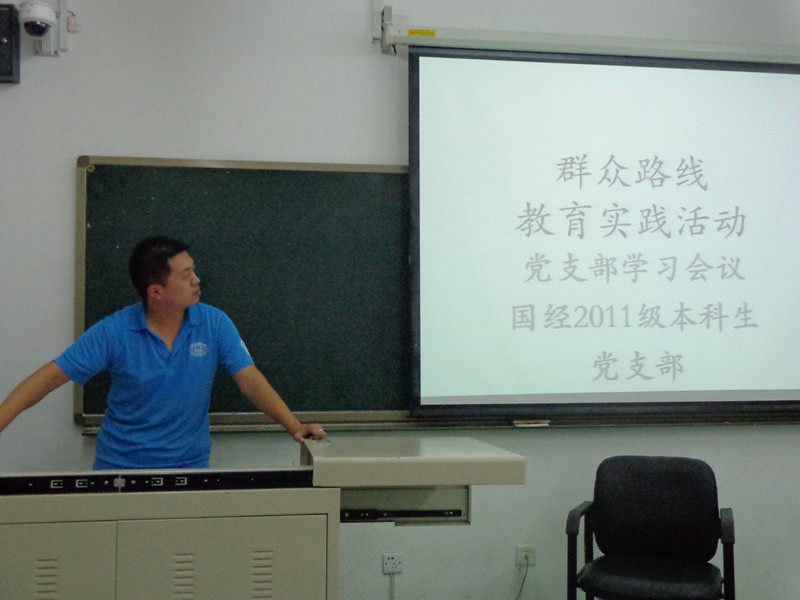 2011级本科生党支部在端升楼313教室开展以“开展群众路线”为主题的教育实践活动学习,学习讨论党的群众路线。