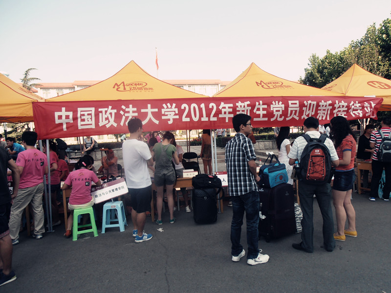 整个迎新工作有条不紊的进行着,北京的高温使得志愿者们的衣服早已被汗水浸透,但是他们依然热情不减的为新生党员们搬运行李,解答疑惑。谢谢这些可爱的志愿者们,你们辛苦了!