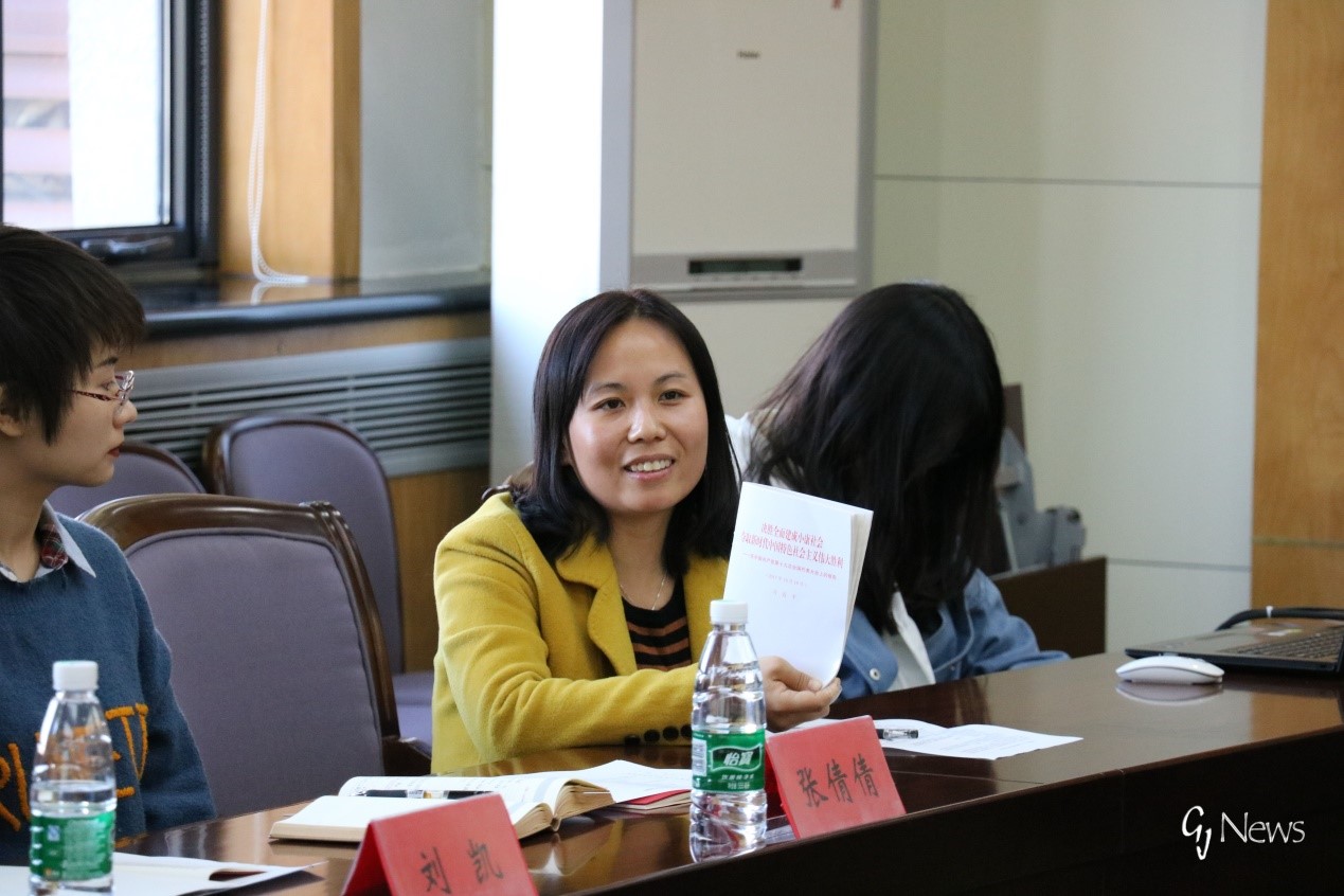 袁芳老师以“梦想与责任”为主旨,针对“党的十九大报告指引青年前进方向”这一话题进行了了深刻而细致的发言。谈及党的十九大报告对青年人成长环境的定位时,袁老师从“新时代”这一概念入手,重点向同学们阐释了“新时代”内涵的五方面,并从“社会主要矛盾转化”、“三个意味着”的本质内涵出发,呼吁青年人紧跟时代潮流,贯彻党的指引,踏实肩负梦想,主动承担责任,成为新一代党建的生力军和各行各业的中流砥柱,为社会主义建设事业贡献自己的力量。