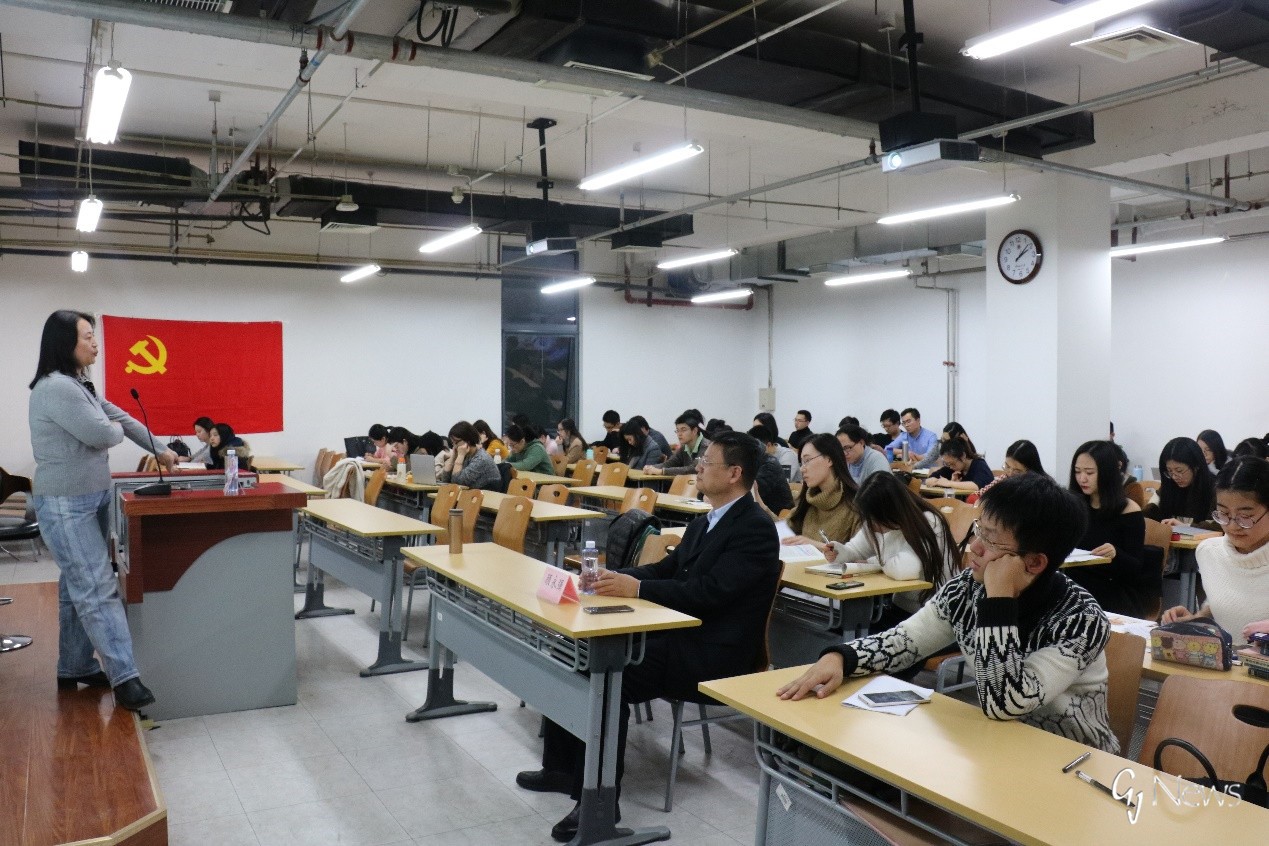 全体党员、发展对象和入党积极分子参加了活动。学院路校区的宣讲活动于科研楼地下教室开展,“党的十九大精神宣讲团”成员、马克思主义学院张秀华教授担任主讲,黑料网