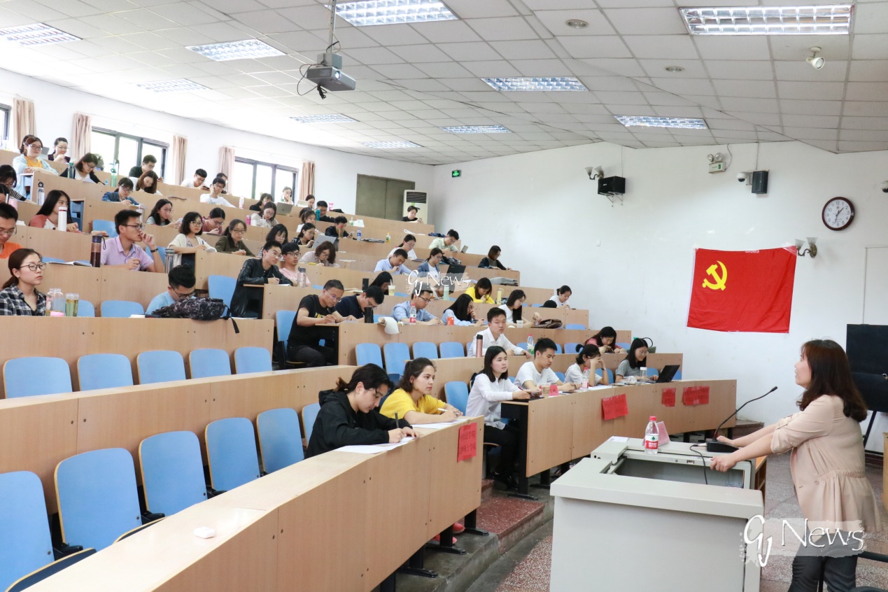 接下来,党课正式开始。政治与公共管理学院的李群英老师为同学们讲解全面从严治党的相关知识。李老师分别从从严治党之内涵和意义、历史回顾和基本经验、原则和八项具体要求来帮助同学们了解中国共产党的发展历史,学习探讨全面从严治党在当代所具有的时代必然性和国际意义。