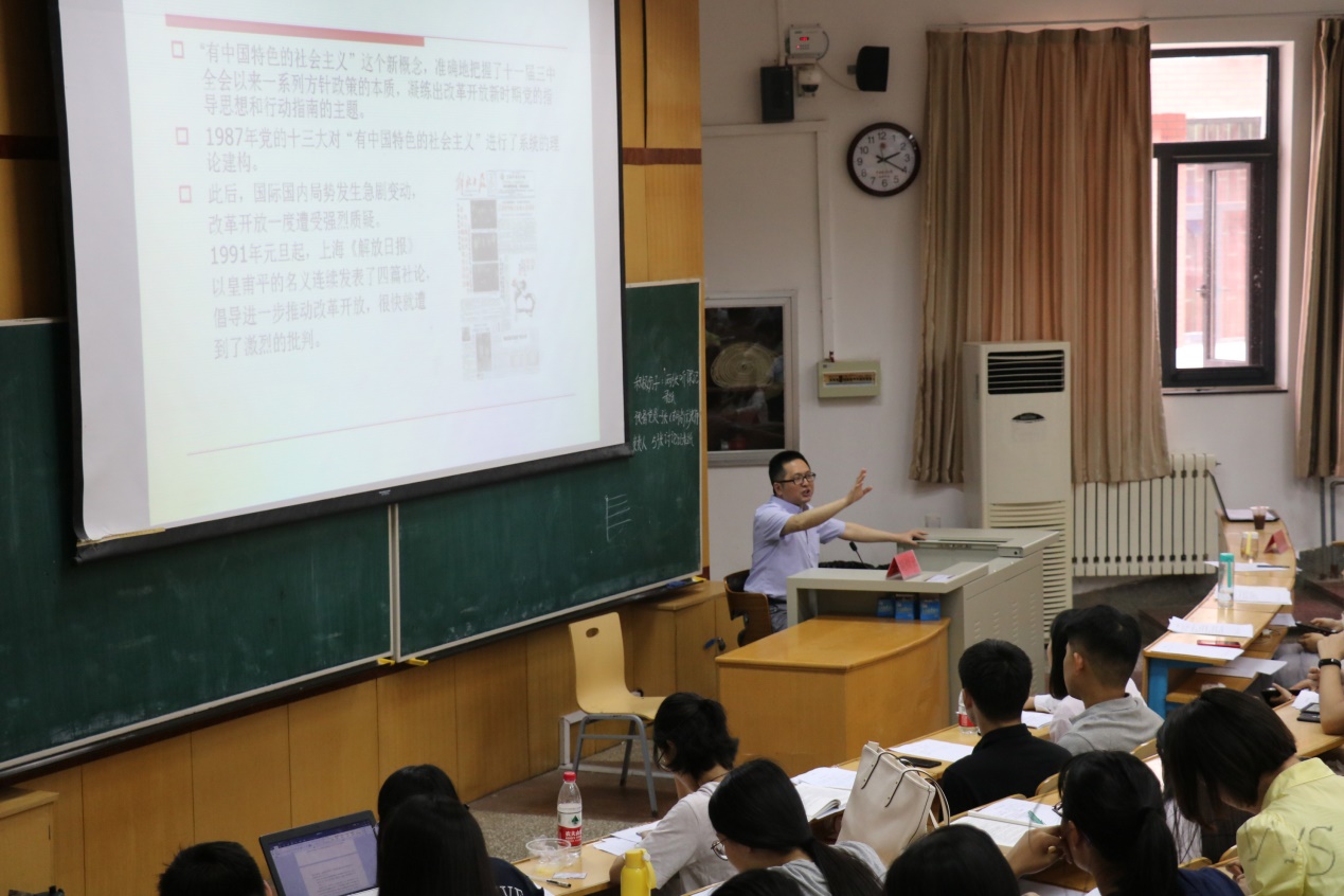 下午的课程特别邀请到胡尚元老师和赵云鹏老师主讲。首先由马克思主义学院的胡尚元老师围绕党的十九大会议精神为同学们进行讲解。胡老师将党的十九大会议精神的现实意义解读为行动指南的新发展、历史方位的新判断、主要矛盾的新论断。他分别从历史和现实来探索党的十九大会议精神在国家社会发展道路、党的制度方针政策中的作用,引导同学们深入领会党自我完善与自我发展的进程和意义,加深了同学们对于党的十九大精神的理解与学习。