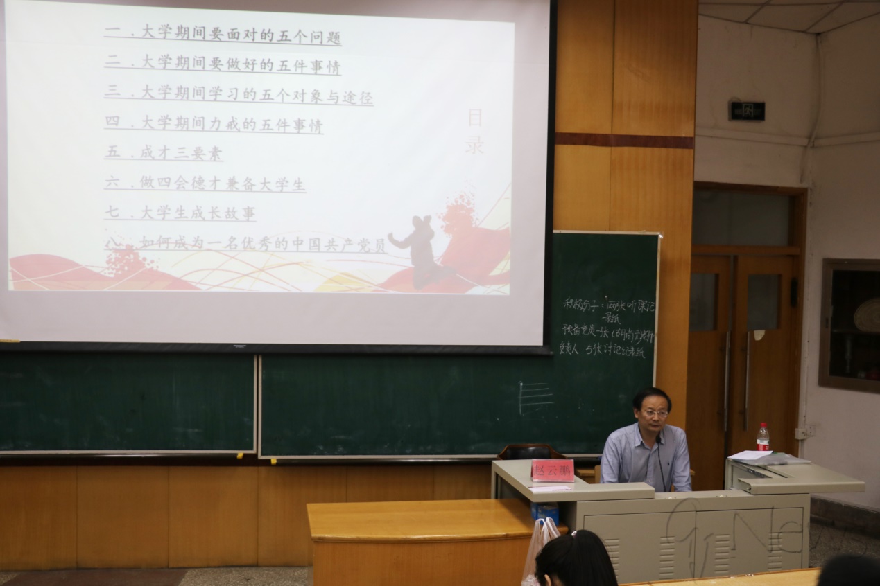 紧接着,外国语学院分党委书记兼副院长赵云鹏老师以青年学生健康成长之路为中心为同学们进行讲解。赵老师着眼于青年学生的大学生活学习,分别从大学期间要面对的五个问题、要做好的五件事、五个学习的对象和途径、力戒除的五件事、成才三要素这五个方面教导大学生如何健康成长,勉励同学们做德才兼备的“四会”大学生。