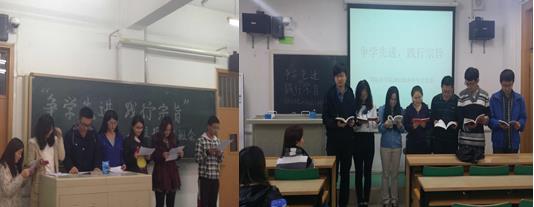 2011级7班本科生党支部组织全体党员面对鲜红的党旗,重温了自己对党忠诚的誓言,表达了为党的事业奋斗终身的决心。