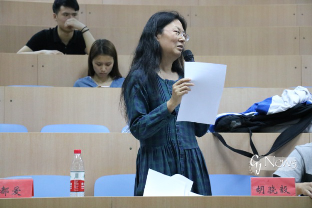 首先,七名选手根据自身对主题“争鸣”的理解作三分钟的演讲。演讲之前,先播放介绍参赛选手的视频。每两名选手演讲完毕,先由评委老师进行点评,之后公布选手分数。每位选手的演讲都各具特色,阐述了自己关于“争鸣”的理解和感悟。评委的点评也十分精彩,让选手们获益良多。第一轮比赛结束后,五名选手晋级。