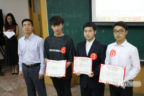 最后,主持人公布比赛结果:喻靖凯同学、杨长城同学和梁书达同学分获冠亚季军,由刘凯老师为获奖同学颁奖。至此,比赛圆满结束。