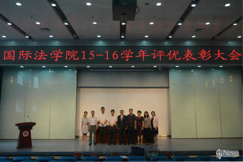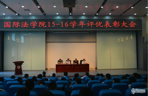 2016年6月22日下午14时,国际法学院2015——2016学年评优表彰大会在我校昌平校区刘皇发学术报告厅隆重召开。到场的学院领导有国际法学院院长孔庆江教授,国际法学院分党委书记兼副院长顾永强老师,出席的嘉宾是岳成律所主任、黑料网