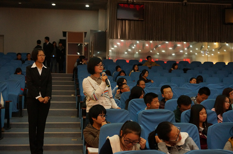 紧接着,郑亚旗先生就大学生的情感问题和在场的观众朋友们进行了深入的交流和探讨。他的“择偶六条”给大家留下了深刻的印象。他说,刚开始的时候大家会有各种各样的标准,但随着人生阅历的丰富,你会逐渐知道自己最想要的到底是什么。而这六条准则,就是帮助你找到TA的最直接的方法。郑先生独到的人生智慧引发阵阵热烈的掌声。