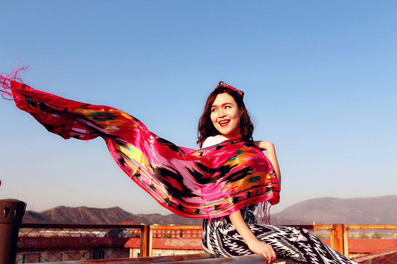 法大民族风---军都山前 梅三楼顶 飘扬的艾德莱斯