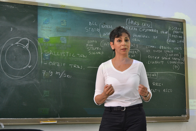 学生会学术部承办。本次讲座主题围绕“国际社会为减缓空间碎片所作出的努力,使得空间碎片的减缓成为一项正在形成的国际习惯法规则”展开。主讲人为国际空间法协会访问教授、曼弗雷德·拉赫斯空间法模拟法庭委员会联席主席玛莎·梅吉尔(Martha Mejía-Kaiser),讲座由国际公法研究所所长郭红岩主持。
