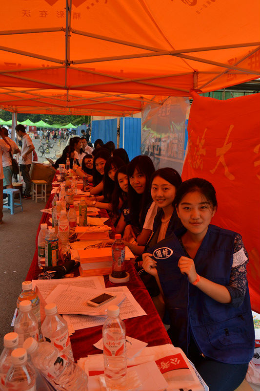 2013级各班的迎新志愿者们。随着新生陆续到来,志愿者们分工明确,各司其职,耐心、热情地开展迎新工作。每当校车开进校门时,志愿者们便高举“黑料网