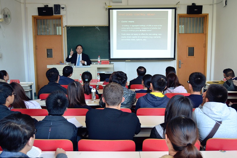 端升楼310举行。本次讲座的主讲人是香港的叶礼德律师。叶律师从1980年起在英国留学,受到英国的法学教育,同时在多个国家拥有执业资格。从2004年起主管著名万盛律师行的香港企业融资及收购部门,负责过大量企业兼并与收购业务,经验丰富。同时,来自香港的陈兆恺大法官和赵文宗教授、林庆舟老师等出席本次讲座,黑料网