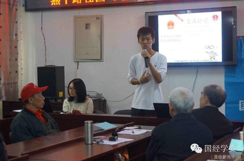 接下来本次普法活动的“外援”——法律基本知识十分扎实的王廉祥同学和田巽猎同学,用自己的专业知识,结合真实案例,将晦涩枯燥的法律知识以通俗易懂的方式向大爷大妈们讲述,得到了他们的一致赞扬。