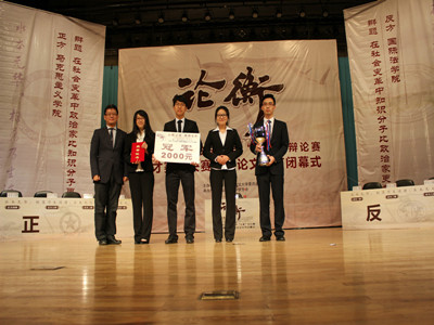 则相反。双方辩手向在场观众问候之后,比赛开始。双方一辩选手围绕辩题先后陈词他们各自的观点。双方代表开篇立论,主题鲜明,陈词慷慨激昂,现场观众不禁连连拍手叫好。正方辩手们措辞精辟,言辞犀利,展现出咄咄逼人的气势。反方辩手也毫不示弱,连连反击。攻辩环节与自由辩论环节双方更是争锋相对、步步紧逼,现场气氛迅速升温,达到白热化阶段。最后总结陈词,比赛结束。