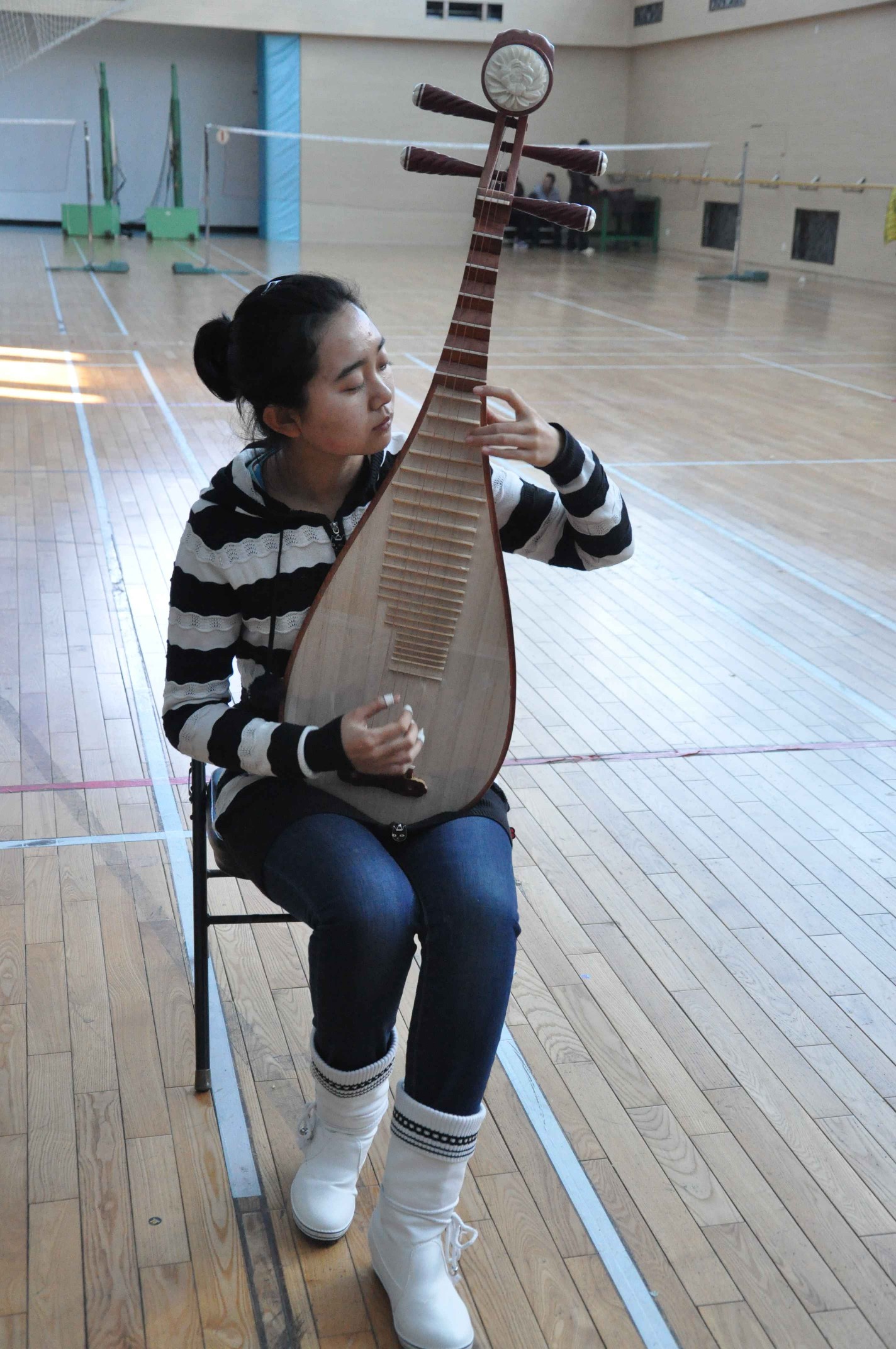 紧接着一段淡雅的古筝曲轻轻的撩拨着人们的心弦,手指轻扬,一串串美妙的琴音就落在我们身旁。人人都向往着那广阔无垠绿草油亮的呼伦贝尔大草原,一支蒙古舞蹈仿佛把我们带入了那一片绿意中,一个转身,一个扬袖,脑海中可以描绘出在那美丽的大草原上一位蒙古姑娘在翩然起舞。