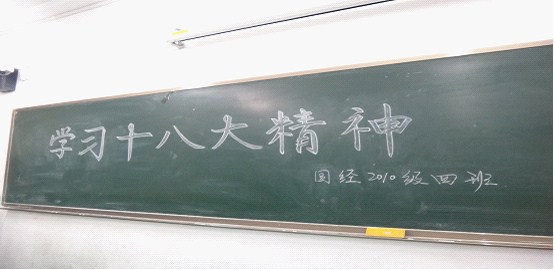 10级实验班在会议流程上分为自学理论知识、小组讨论热点问题、班干部代表提交学习报告三部分,现场气氛热烈,作为三年级的学生,同学们对党的十八大精神的认识更为深刻,就所提交上的学习报告来看,同学们大都经过了认真思考、充分总结,能够真正领悟党的十八大的深刻内涵,充分彰显了新时期大学生的思想风貌。