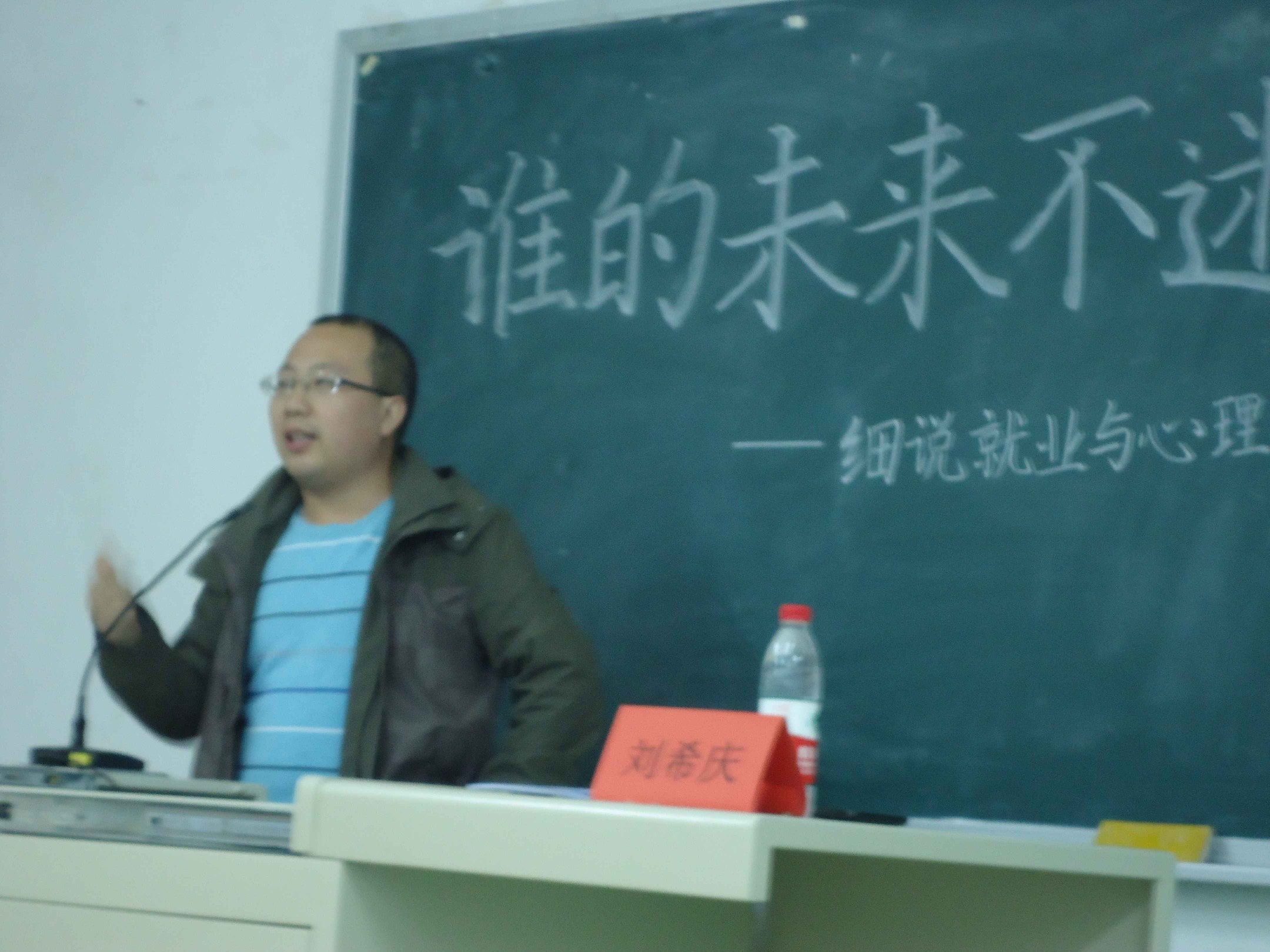 讲座开始,刘老师就当前的大学生就业形式、就业方式、就业制度改革对到场的同学做了简单介绍,让同学们了解到当前大学生就业面对的竞争和挑战。同时,他指出:在所谓大学生“就业无门”的社会,我们也有很多的机遇。抓住机遇,摆正心态,就业就是只“纸老虎”,你可以去征服它,获得良好的就业机会。