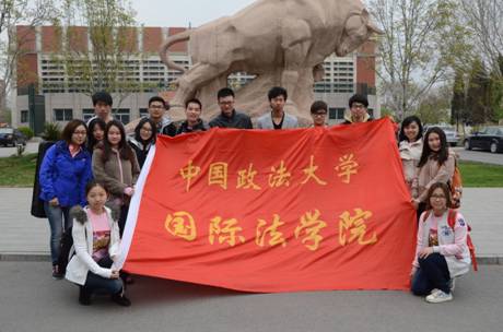 9时40分许,拓荒牛前身穿粉色团服的国经学生会合唱团青春男女们和前来助阵的生活部的热血青年。举着院旗,合影,出发!