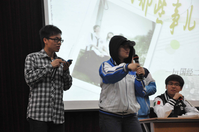 情景剧表演结束后,就是有奖抢答环节,同学们纷纷举手,甚至有的同学直接跑上了舞台,大赛的气氛达到了最高点,回答问题的同学们争先恐后,还有很多同学在一旁加油助威,整个学术报告厅成了一片欢乐的海洋……