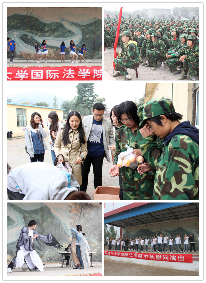 军训慰问团特意为学院新生准备了月饼和水果,并为法大所有参训学生送去了一场精彩的演出。