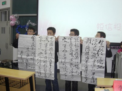 学委会办公室部长马克和学生会生活部部长都基旭合作完成的藏头诗毫无意外地将节目推向高潮,现场同学们热情高涨。