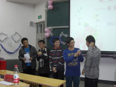 学生会文艺部长孙小悦、副部长邹文博,院合唱团团长刘思旻,09级新生演唱秀最佳人气奖得主高樱识,邀请到了嘉宾学生会副主席李冠颖和曹烨云。