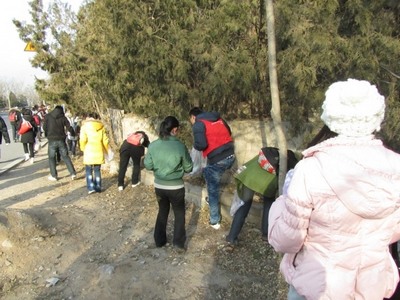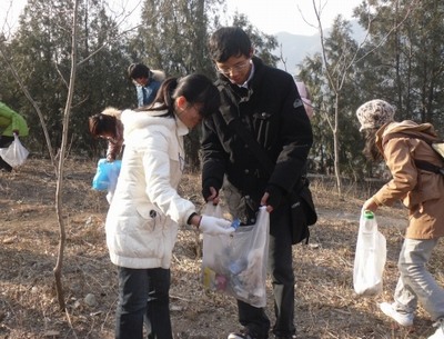 出发,步行一小时来到十三陵水库。在十三陵水库的环保活动中,同学们沿着水库边的马路前行,一路拣拾游人丢弃的废纸,烟头,塑料袋等垃圾,不怕苦,不喊累,清晨的低温也抵挡不住同学们对环保的热情,充分发扬了当代大学生吃苦耐劳的精神。当同学们看到经过大家努力而恢复洁净的马路时,心里充满了喜悦之情和成就感。