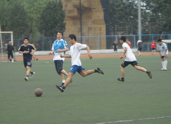 比赛进入下半场后,双方队员由于体力消耗较大,都放慢了比赛节奏,两队交替掌控球权,互有攻防。最终,06级足球队打破僵局,以一次成功的防守反击将比分改写为1:1。联队被追平比分后立即展开进攻,接连打入三粒进球,将比分改写为4:1。面对3分的分差,06级队伍没有气馁,趁着联队心态放松,连追3分,奇迹般地扳平了比分。终场哨声响起,全场比分定格在了4:4.,双方握手言和。