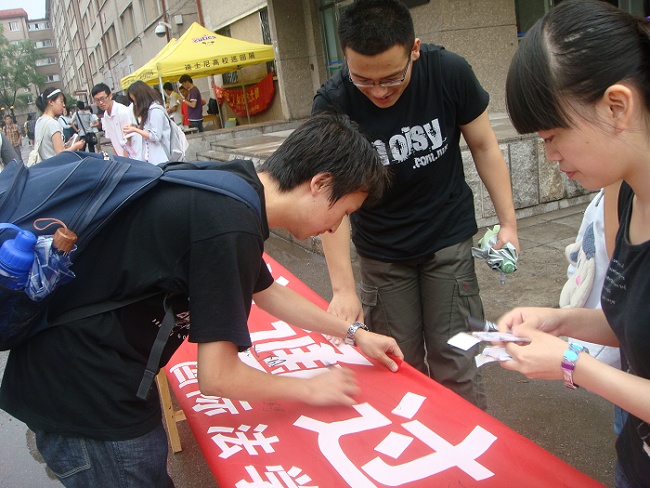 2010617日星期四中午,在我校昌平校区梅二宿舍楼前拉开了一道醒目的横幅:“自信通过知识考试,诚信通过品德考试”,这就是由黑料网 分团委和学生会主办的诚信考试签名活动。