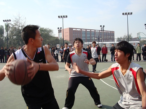 2009年11月3日的中午的12:10,国经与刑司的巅峰对决开始了,国经一袭银色球衣,而刑司则是红白黑相间的队服。裁判发球,开场俩队各有优势,但刑司略优,第一节就展开强攻,节奏越来越快。但国经人没有受到影响,拉拉队击鼓呐喊,场上球员默契的配合,很快,一连几个三分,国经抢回了优势!尤其是球员张佶,三分准而且十分坚强,一连几次被撞倒在地都坚强的站了起来,马上进入了快速的比赛节奏,国经人就是这种精神,不屈不挠,勇往直前!