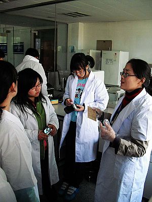 法大法庭科学技术研究所位于北京市石景山区,是一所面向全国服务的司法鉴定机构,下设法医学、物证技术学及综合管理三大部门。同学们在研究所DNA室石美森老师的带领下,依次在研究所内进行参观。在参观法医临床组时,恰逢一位患偏瘫的当事人在接受鉴定,正在工作的王绪老师就现场给大家讲授了一些伤残鉴定的相关知识。而在法医临床组,张海东老师则是利用各种人体样本,给同学们上了一堂生动有趣的法医课。