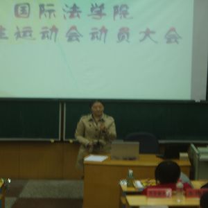 体育部精心制作的一段PPT拉开了大会的序幕,屏幕上,07,08级运动会的精彩瞬间以及近日来运动员和走方阵同学的训练场景感染了每一位同学,师兄师姐们感慨不已,新生运动员们更是热情高涨!范老师百忙之中抽出时间参加了此次大会,为同学们鼓足士气,她说:“运动会的成败取决于每一个同学,每一个同学都是主角。国经的精神就是同学们追求卓越,永不言败,执著奋斗的精神!”我相信,范老师的那句“国经可能不是永远的赢家,但我们是打不败的”深深震撼着每一位国经学子的心,我们会在9月23日,在运动场上践行这句话!范老师也对每一位同学表示真诚的感谢,希望在运动会进入倒计时时,大家积淀最强的力量,运动会上为集体的荣誉而战!