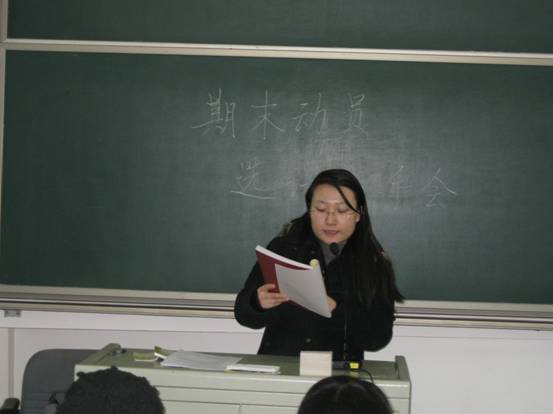 同时根据学校《学位授予规定》,大会向2008同学提出了对必修及选修、专业与非专业课程的成绩要求。激励同学们抓紧时间进行准备,力争在期末考试中取得好成绩,考出国经人的风采。