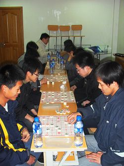 中国象棋个人赛3月26日19:00——21:00中,顾永强老师、庚红老师和刘凯老师都参加了比赛,还有幸邀请到了校团委书记项云老师,前四名分别是庚老师,刘彤(大三),顾老师,陈颖(大二)。