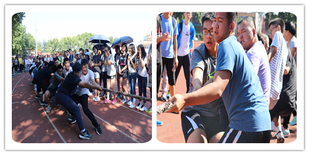 为了增加运动会的趣味,学院组织同学们以班级为单位进行了趣味拔河比赛。每个班级积极性高,同学们更是竭尽全力,朝着着第一的目标努力。