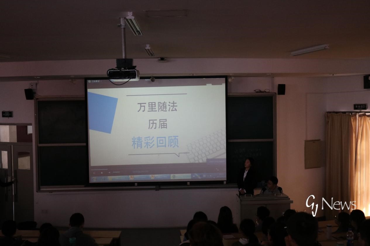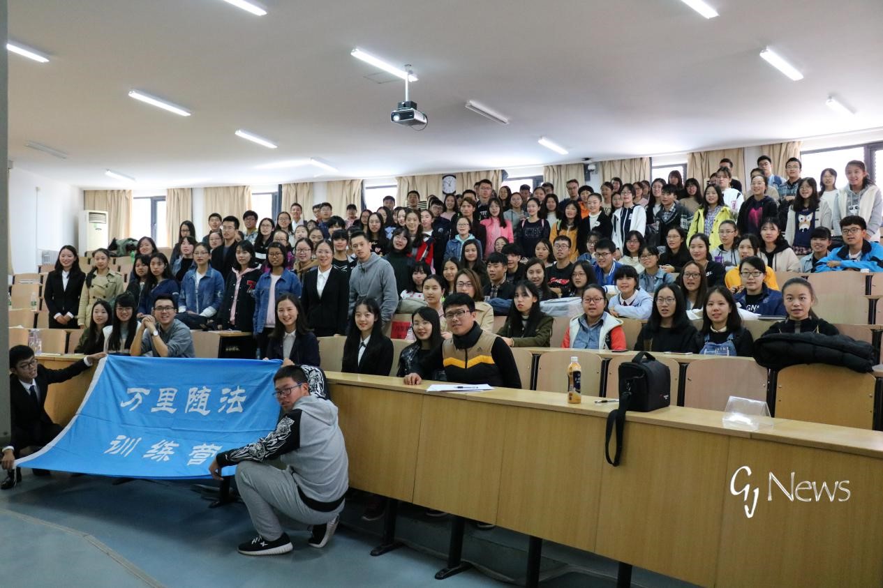 2017年10月23日,万里随法训练营开营仪式在阶七成功举行。2014级辅导员刘瑾老师、学生会主席阮昊翔、职业拓展部分管主席颜可歆以及万里随法训练营全体营员到场参加。