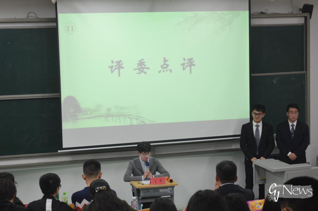 热烈的观众提问环节过去后,评委入席,并由评委代表孙昊一对双方的论证进行点评。他指出正方从大城市的优势进行论证较好,但不应只局限于大城市的新兴产业发展;反方从大小城市的人才供求量而非就业岗位量的切入方法很好,但语言还需精炼,才能引起观众和评委共鸣。最终主持人宣布本次新生辩论赛总决赛获胜班级为1706班,获得最佳辩手称号的是正方二辩。
