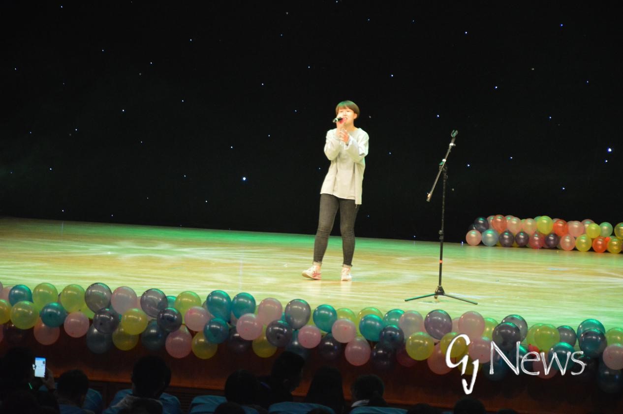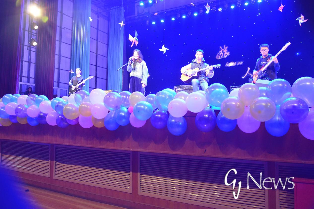 灯光微暗,吉他声起,在同学们期待的目光中,大赛以一首无边界乐团的《加州旅馆》拉开帷幕。曲罢,晚会主持人宣读了本次大赛的规则。本次比赛共分为三个环节,分别是大咖帮唱突围赛、冠亚资格赛和终极之战。较之以往,本次大赛不仅独出心裁地引入了“嘉宾帮唱”制,而且新增了歌手突围这一环节,使节目更具挑战性,更能激发观众的兴趣。