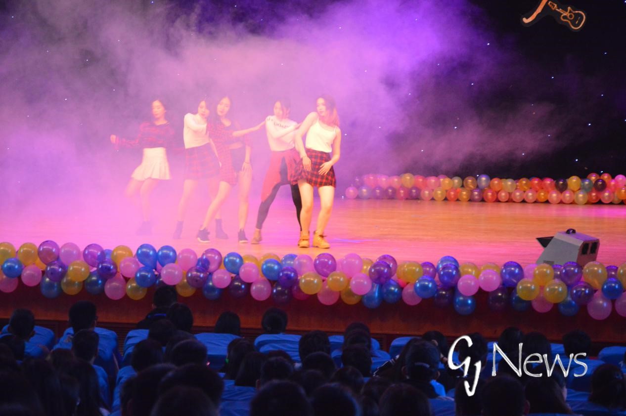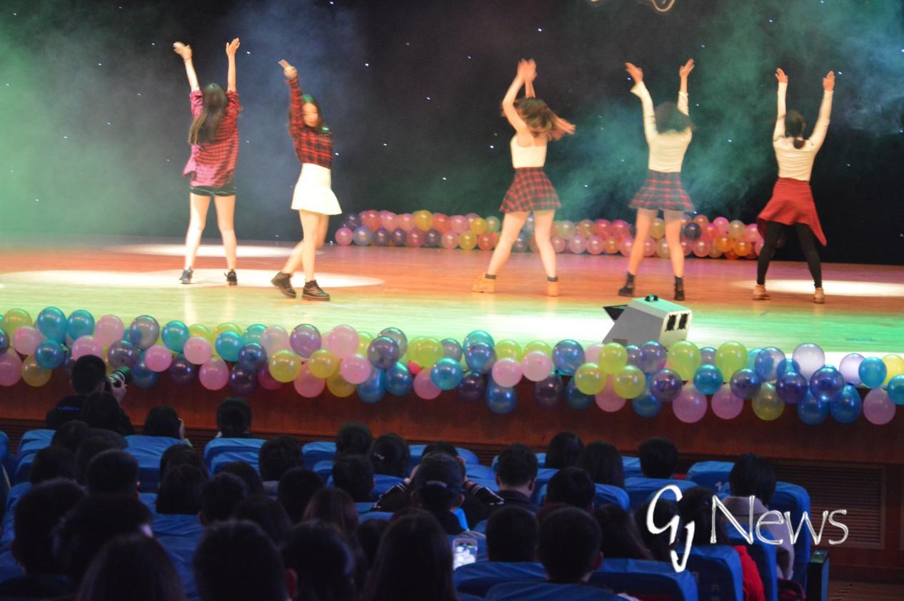 接下来的比赛中场休息阶段,天空印象舞蹈团为同学们带来歌舞表演,适时地缓解了紧张的比赛气氛。
