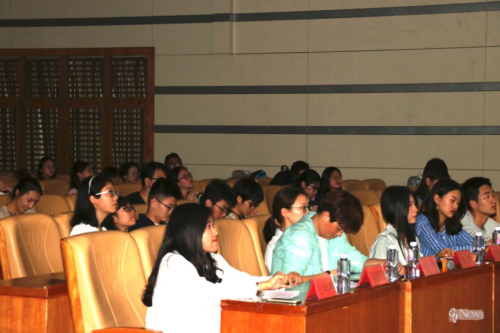 第二轮的比赛更为精彩纷呈,它采取即兴演讲和评委一对一问答的形式。我们的选手在未知的情况下,临时抽取一个未知的主题进行阐述,限时三分钟。我们的选手分别抽到了“初心与新征程”、“佛系青年”、“大学生安全意识”、“综艺版权有问题仍然热播”等问题。他们依旧不骄不躁,沉稳却不乏激情地表达自己的观点,评委们也认真聆听,指点,不仅给选手带来颇大的收益,也给观众们带来一次完美的思维和语言的盛宴。