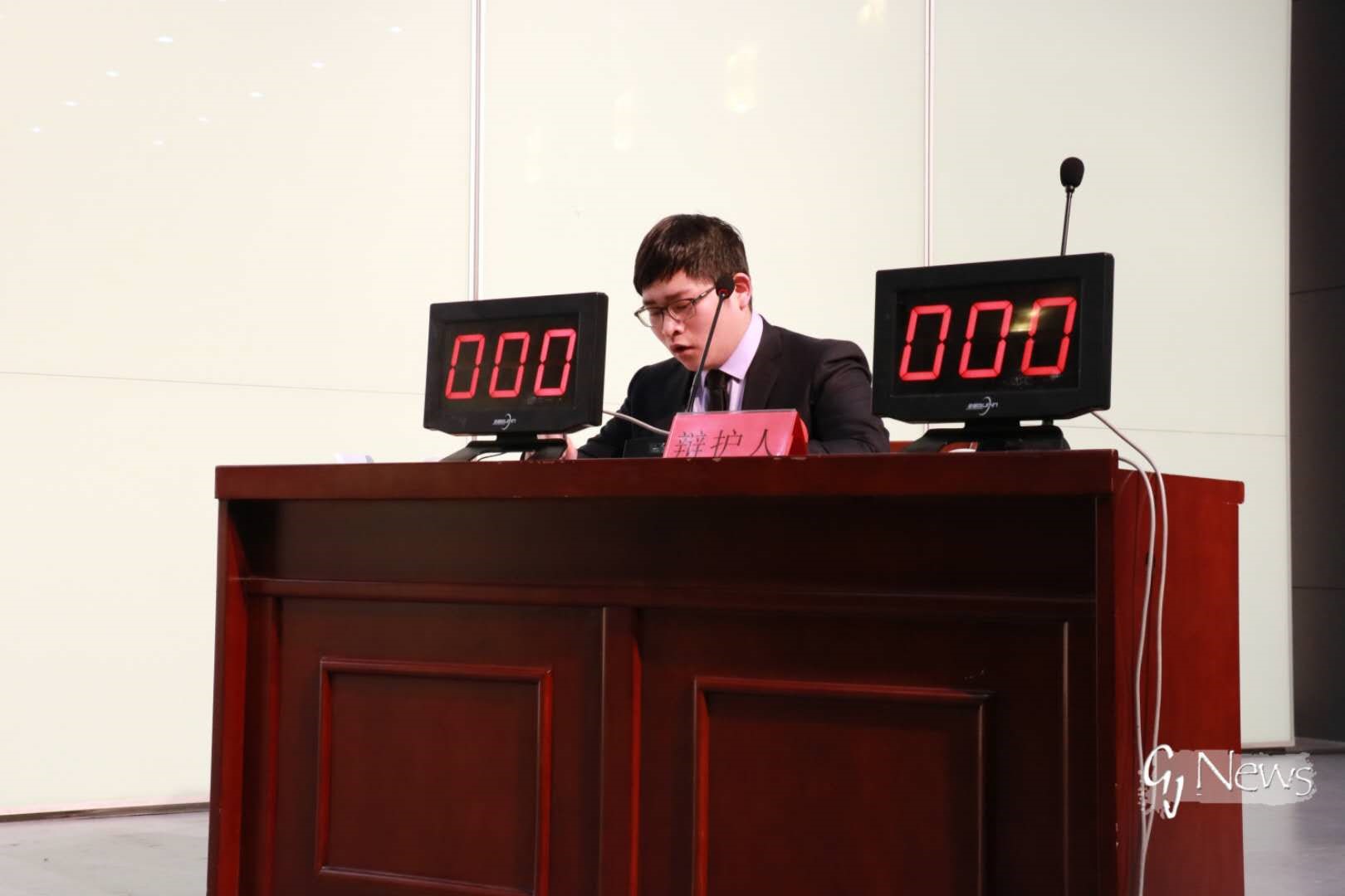 第三环节为模拟法庭辩论。宋静雯与朱慎独分别作为公诉人与辩护人就“船员失船造成船上工人死亡”一案展开激烈的法庭攻辩。唇枪舌剑、针锋相对,辩庭上双方都不甘示弱,沉着应对对方的攻势。
