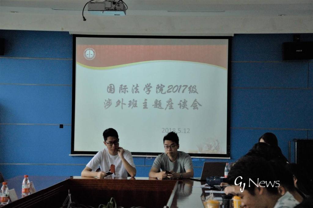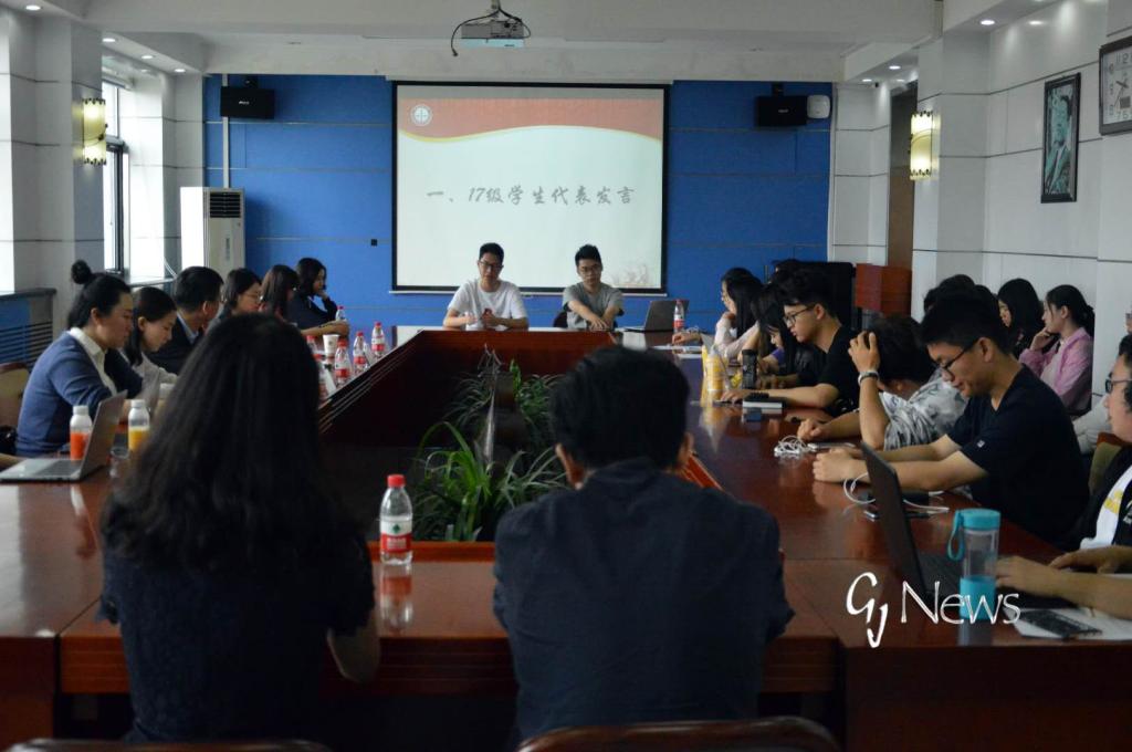 党委书记兼副院长顾永强、分团委书记兼15级辅导员刘凯、分团委副书记兼14级辅导员刘瑾、17级辅导员张倩倩、16级辅导员李京、国经15级涉外班陈钢和高若云同学及国经17级涉外班全体同学参加了本次座谈会。