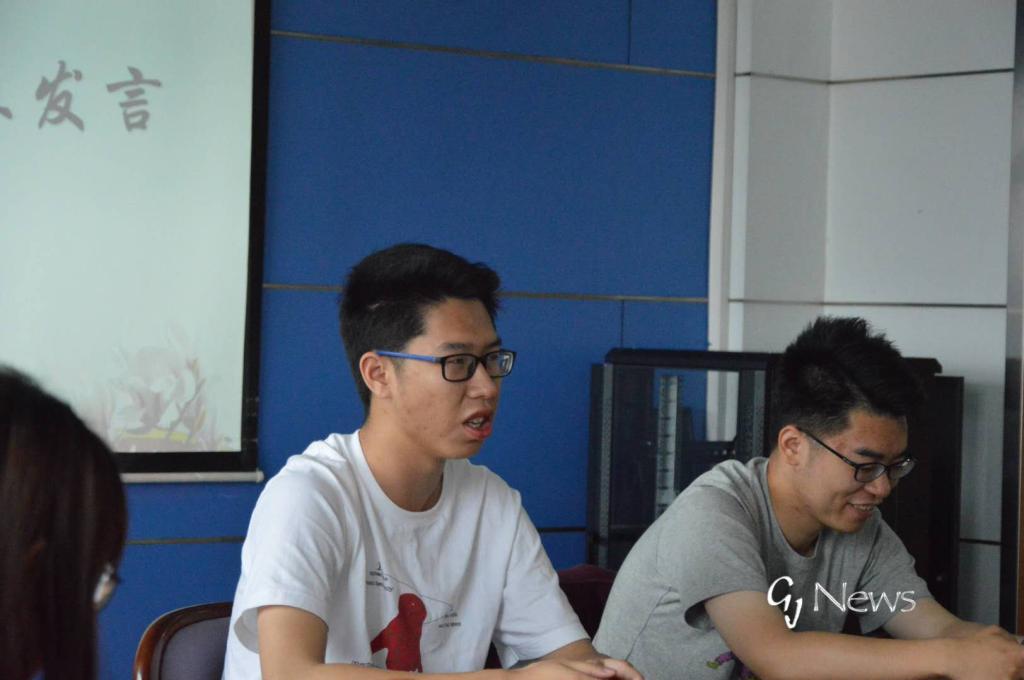 接下来15级涉外班优秀学生代表发言。陈钢同学以自身经历启发同学们如何找到适合自己的定位和方向,合理规划时间,抓住机会,并为同学们目前遇到的问题答疑解惑。高若云同学则从心态转变、具体施行以及学习建议三个方面分享自己的经验,为同学们今后的学习与发展提供建议。